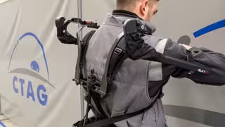Trabajador hace pruebas con un 'exoesqueleto' en el Centro Tecnológico de la Automoción de Galicia (CTAG). - CTAG