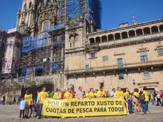 Bajo una pancarta en la que se podía leer 'Por un reparto justo de cuotas de pesca para todos', un centenar de trabajadores de la Asociación de Armadores del Cerco de Galicia (Acerga) y la plataforma de Mulleres do Cerco han recorrido este domingo las calles de Santiago, desde la Alameda hasta la Praza do Obradoiro.