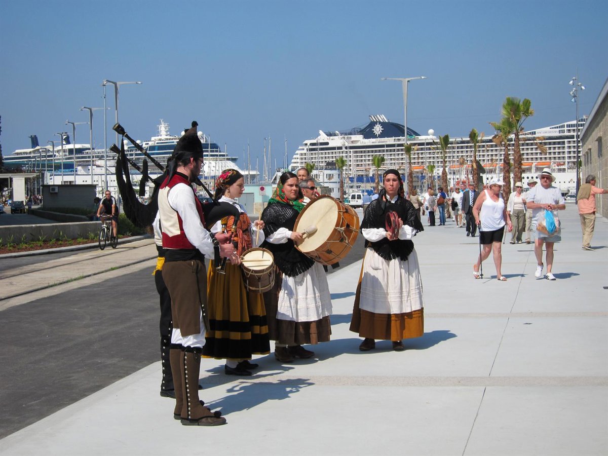 La coincidencia de estas cuatro embarcaciones ha permitido asimismo la entrada en funcionamiento de las recientemente inauguradas instalaciones del 'Tinglado del Puerto', en el Muelle de Comercio, concebidas como una segunda estación marítima --la primera es la del Muelle de Trasatlánticos--. De hecho, este mediodía podía verse en las inmediaciones del recinto a una banda folklórica que daba la bienvenida a los turistas, que desde la mañana paseaban por las calles de la urbe.