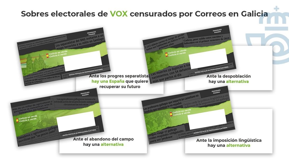 Correos decidió paralizar la distribución de la propaganda electoral de Vox para el 12 de julio debido a los sobres escogidos por la formación, que contenían todo tipo de mensajes, titulares y lemas sobre 'invasión migratoria', violaciones o que el BNG "invitó a un grupo terrorista a un mitin".