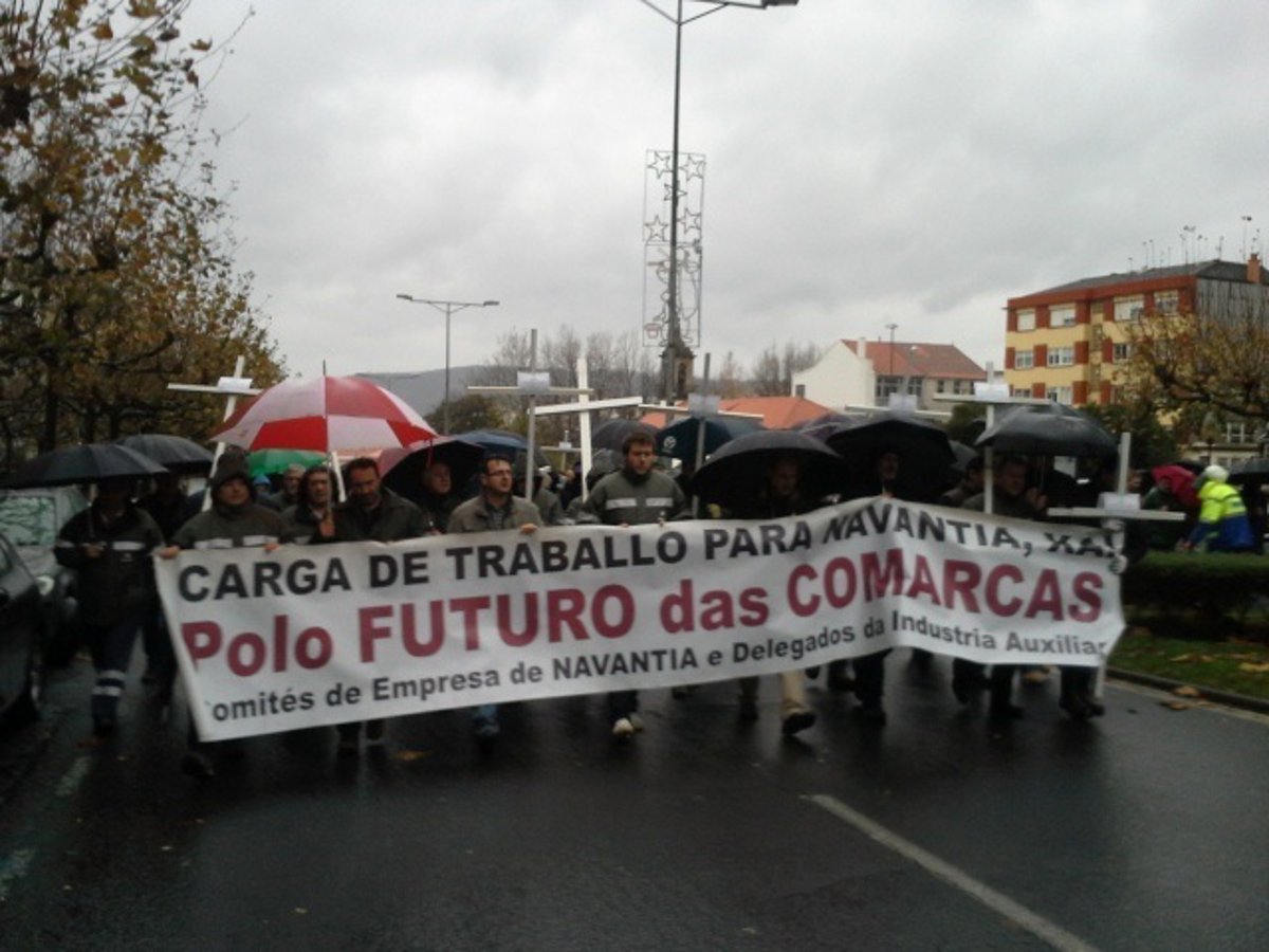 Los trabajadores han colocado cruces de madera en frente del edificio de la Xunta de Galicia en Ferrol, en las que se muestran nombres de empresas auxiliares del naval que están en proceso de regulación o han desaparecido ante la falta de carga de trabajo. Posteriormente, se han desplazado hasta el edificio del Ayuntamiento, en la Plaza de Armas.