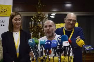 El alcalde de la ciudad y presidente de DO, Gonzalo Pérez Jácome, ofrece una rueda de prensa durante el seguimiento de la jornada electoral de los comicios autonómicos de Galicia, en el Hotel Princess, a 18 de febrero de 2024, en Ourense, Galicia (Españ - Rosa Veiga - Europa Press