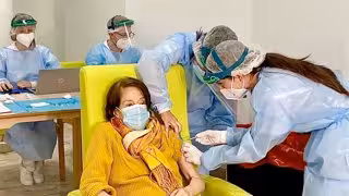 Así, María Ana Ciancio, de 86 años, ha sido la primera residente en recibir la vacunación. "Fue muy bien. No la sentí para nada", ha asegurado poco después a los periodistas.