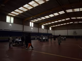 Colegio electoral de Lamas de Abade, en Santiago de Compostela, con los votantes a oscuras - EUROPA PRESS