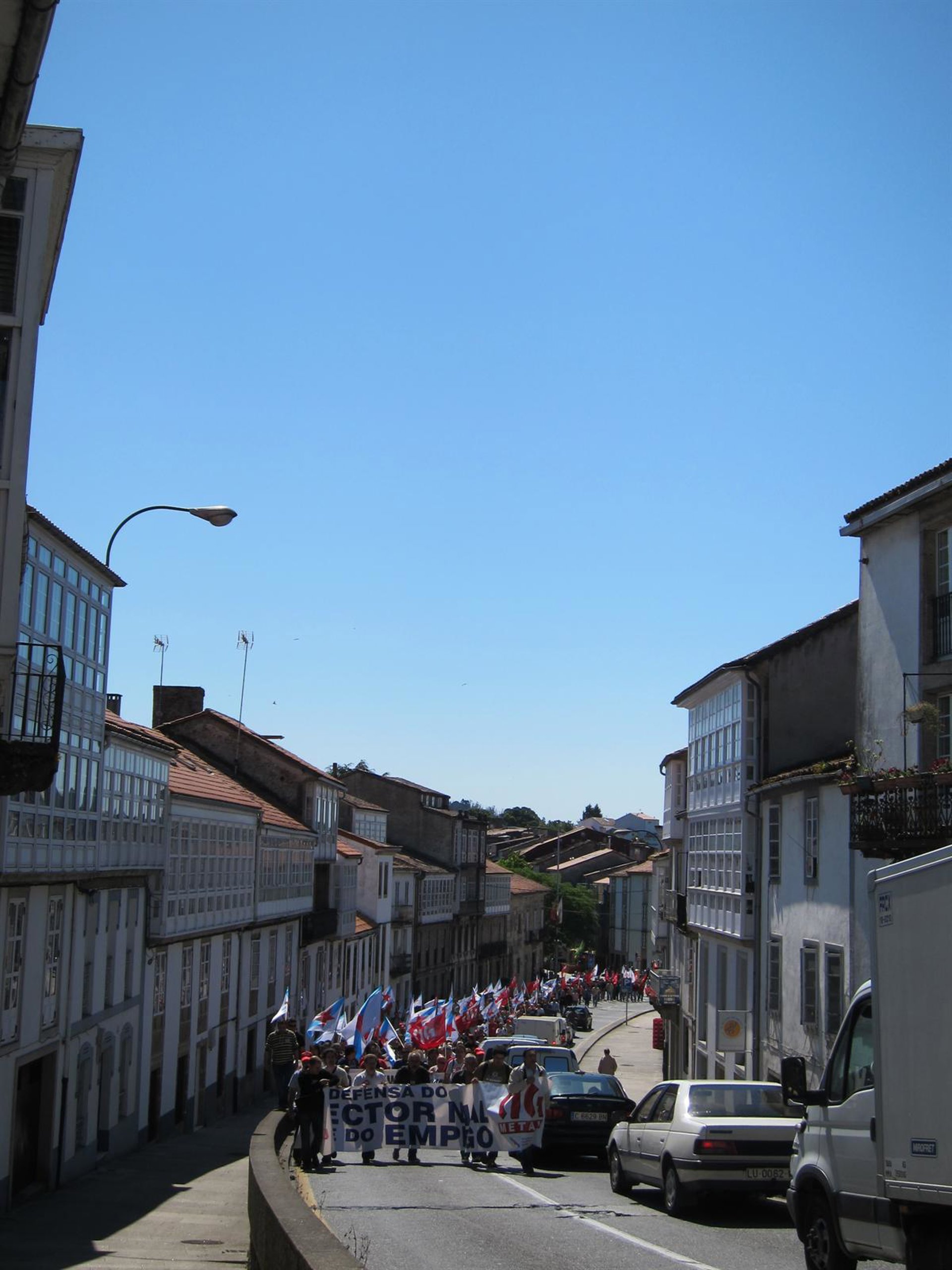 La manifestación, que salió de la Facultad de Derecho y cruzó el centro de la ciudad hasta el complejo administrativo de la Xunta en San Caetano, ha llevado en la cabecera al secretario xeral de la CIG, Suso Seixo, y al responsable de CIG-Metal, Xoán Xosé Bouzas. Los manifestantes han lanzado proclamas para animar a la "lucha obrera" y para pedir la dimisión del presidente gallego, Alberto Núñez Feijóo. Asimismo, han reclamado más carga de trabajo para el sector.