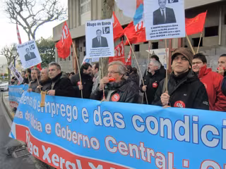 Los manifestantes, convocados por el sindicato CIG-Banca a las puertas de la Cámara, han esgrimido lemas como 'reforma laboral, terrorismo patronal'; 'recortes e despidos, para os directivos'; 'non, non, non, a reconversión'; 'nin un paso atrás, contra as reformas, folga xeral'; 'aí está, a cova de alí babá' y 'vos, franquistas, sodes terroristas'.