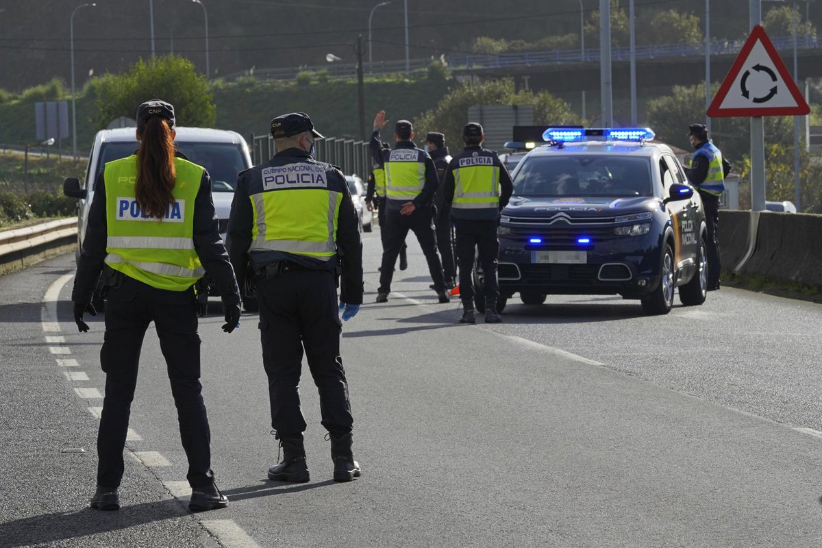Varios agentes de Policía Nacional durante un control de movilidad en la parroquia de O Castiñeiriño (Santiago de Compostela), en la entrada y salida Santiago hacia Ourense, Galicia (España), a 3 de noviembre de 2020. La Xunta ordenó el viernes 30 de oc - Álvaro Ballesteros - Europa Press - Archivo