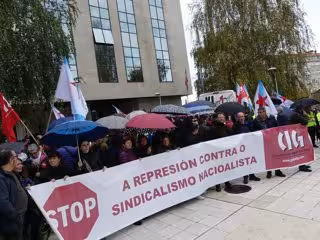 Durante la protesta, en la que estuvo presente el secretario xeral de la CIG, Paulo Carril, se desplegó una pancarta que rezaba 'Stop represión contra o sindicalismo nacionalista' y se gritaron consignas como 'Código penal, para a patronal' y 'Non hai represión que pare a loita obreira'.