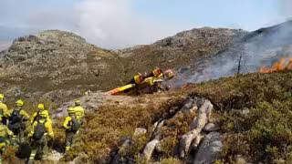 Un hidroavión portugués que trabajaba en la extinción del incendio forestal registrado en Lobios (Ourense), que afecta a zonas del Parque Natural Baixa Limia - Serra do Xurés de Galicia y de Portugal, ha sufrido un accidente en la mañana de este sábado.