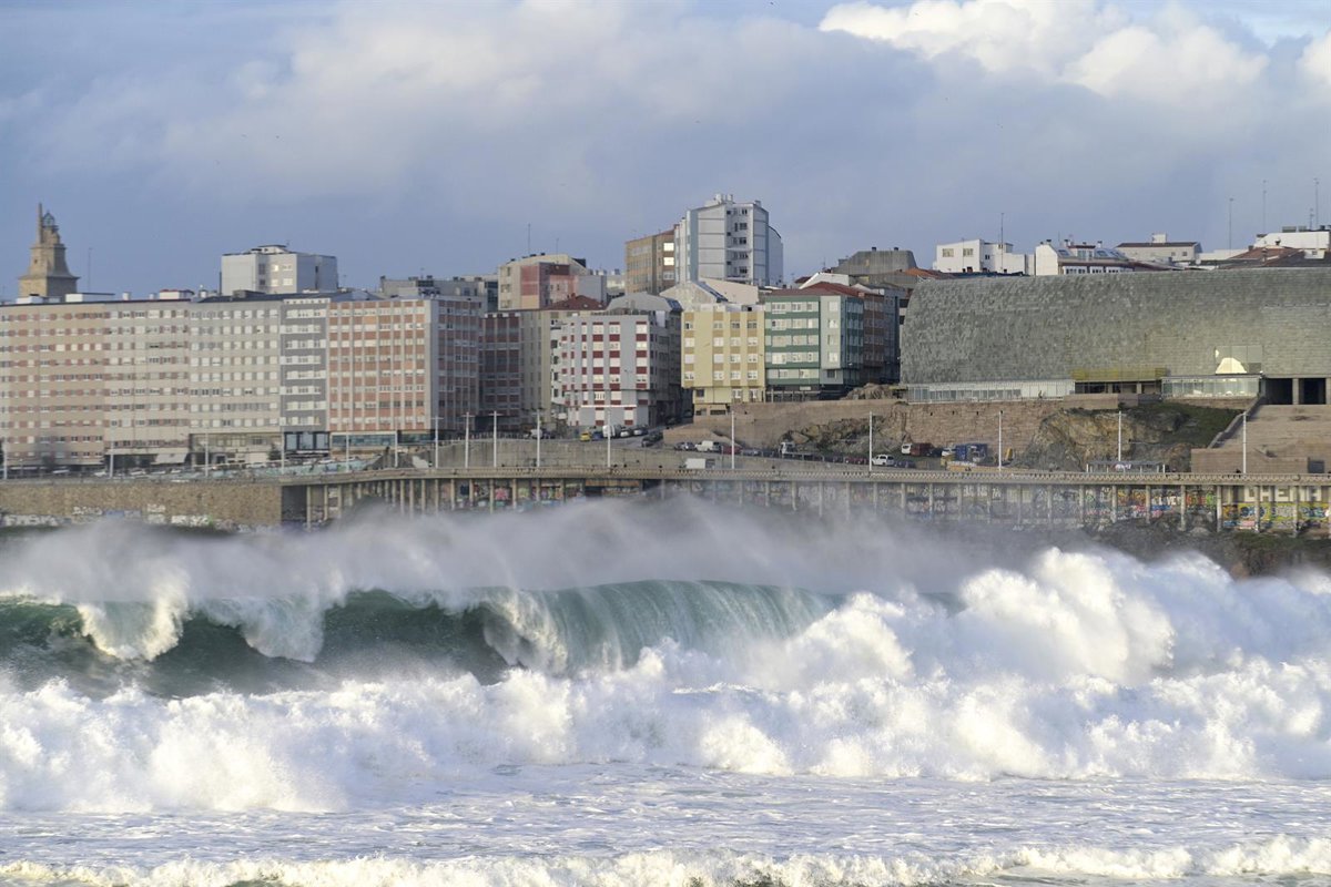 Olas superiores a 8 metros en Playas de Riazor y Orzán, en A Coruña, Galicia (España), a 28 de octubre de 2020. La Dirección Xeral de Emerxencias e Interior ha activado una alerta roja por temporal costero en el caso del noroeste del litoral coruñés y d - M. Dylan - Europa Press