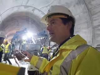 El director general de Adif Alta Velocidad, Juan Pablo Villanueva, durante la supervisión de los trabajos de montaje de vía del tramo Pedralba de la Padrería-Ourense. - EUROPA PRESS