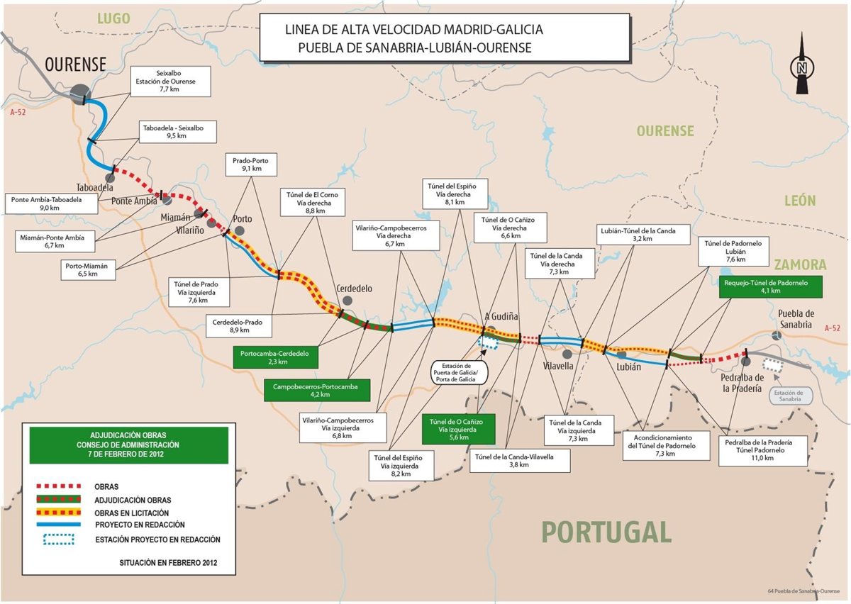 Igualmente, Assignia Infraestructuras, Copcisa, Velasco y Obras y Servicios se han adjudicado en consorcio la construcción de la vía izquierda del túnel de O Cañizo, de 5,6 kilómetros de longitud, 72,12 millones de euros .