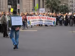 Los manifestantes, que se concentraron con pancartas, silbatos, cacerolas e incluso cencerros, reclaman a Novagalicia Banco que les devuelva el dinero invertido en esos productos financieros que, según denuncian, adquirieron "engañados" y pensando que podrían disponer de sus ahorros en un tiempo breve.