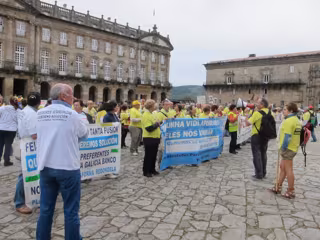Por ello, el portavoz de la plataforma compostelana ha advertido: "¿Qué le va a parecer al señor De Guindos si es la sociedad estafada la que va a controlar Novagalicia Banco?, no va a poder vender y si la vende nos queda la baza de controlar en el Consejo de Administración las decisiones de la entidad".
