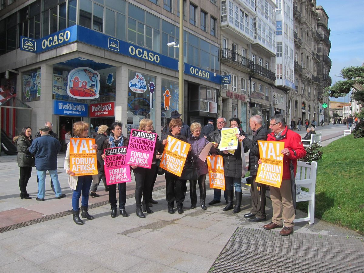Afectados de Vigo por Fórum Filatélico, Afinsa y Arte y Naturaleza Gespart se han concentrado este miércoles para exigir responsabilidades y una solución respecto a los "fraudes al ahorro" y para reclamar que "cualquier pacto de gobierno incluya el compromiso de una solución justa, colectiva e inmediata".