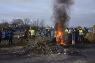 Tanto el sábado como el domingo, los participantes han quemado rulos de paja y neumáticos, todo ello en protesta por el acuerdo comercial entre la Unión Europea y Mercosur.