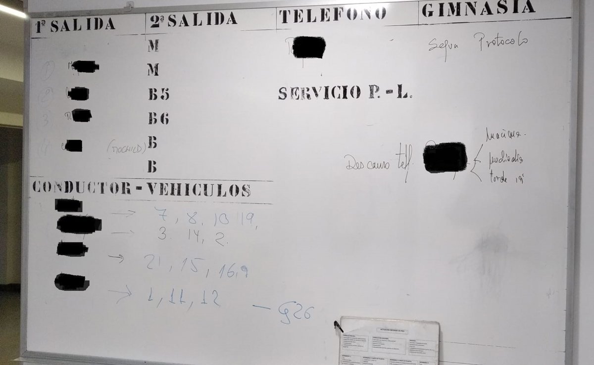Turno de trabajo de este sábado por la noche en el parque de bomberos de Teis, uno de los dos de los que dispone Vigo, en el que se detallan los cuatro efectivos disponibles - COMITÉ DE HUELGA DE BOMBEROS DE VIGO