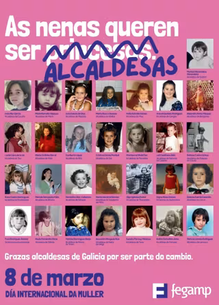 Precisamente, con motivo de la celebración del Día Internacional de la Mujer, la Fegamp ha sacado una campaña en con el lema 'As nenas non queren ser princesas, queren ser alcaldesas', en las que se puede ver a las distintas regidoras de Galicia, a las que agradece "ser parte del cambio".