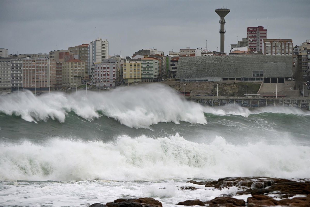 La costa de la provincia de A Coruña está este lunes y hasta el próximo miércoles bajo alerta amarilla por viento de suroeste fuerza 7 y fenómenos costeros, con olas de más de cuatro metros.