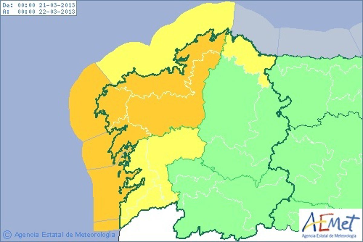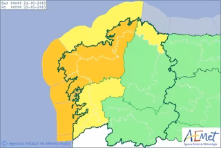 En cuanto al mar, se espera un temporal que afectará, a partir de las 10.00 horas, al oeste de la provincia de A Coruña; y desde las 13.00 horas, al suroeste de la misma provincia. Además, a partir de las 15.00 horas el litoral de la provincia de Pontevedra se verá afectado con vientos del sur y suroeste de fuerza ocho y mar muy gruesa, con ondas que podrán oscilar entre los cuatro y cinco metros.