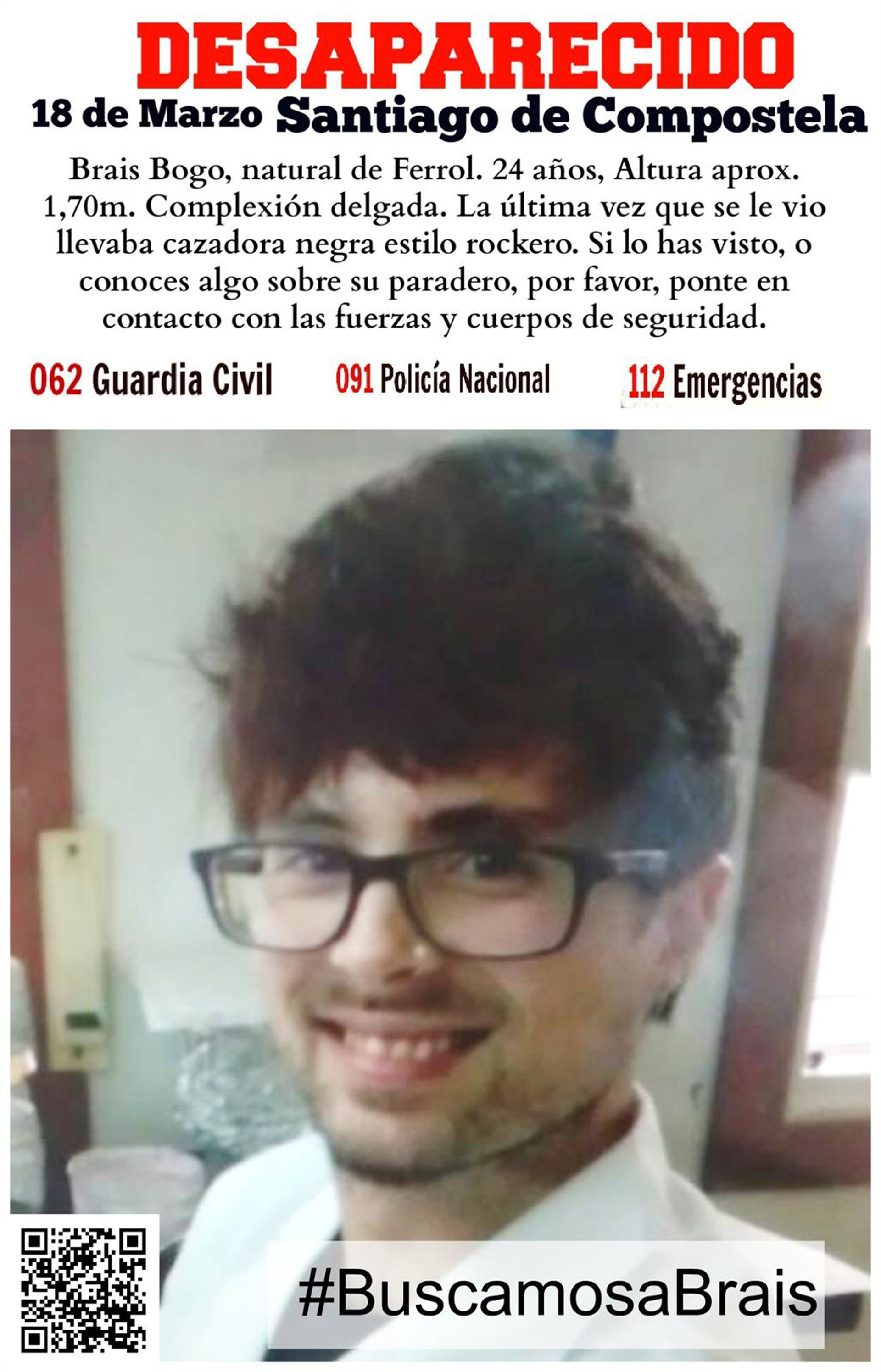 la Policía continúa con las investigaciones para determinar los últimos movimientos del joven, estudiante universitario, y conocer su paradero. Este miércoles se estaba analizando el ordenador y el teléfono móvil de Brais Bogo, así como el despacho en el que trabajaba.