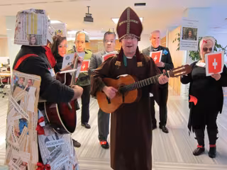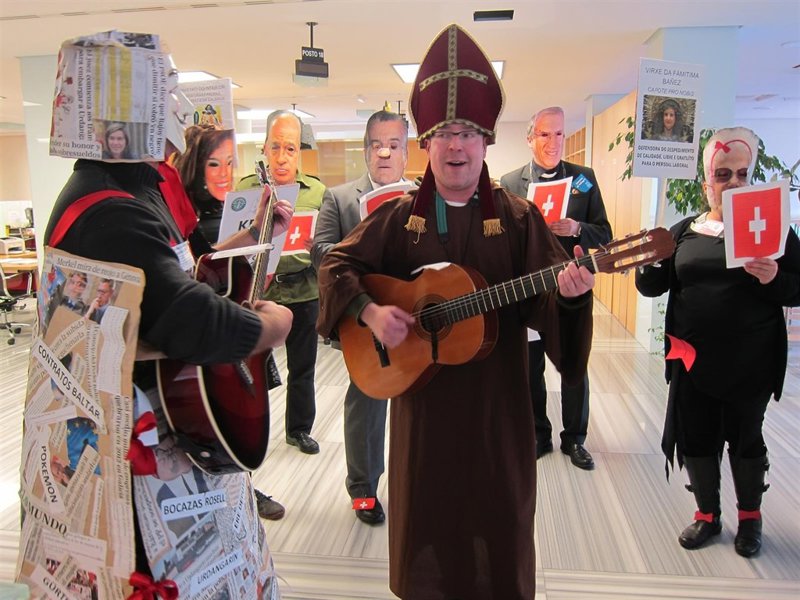 Después de él, con el traje de obispo, otro de los participantes en esta comparsa ha señalado que esta es su forma de reivindicar, de una manera lúdico-festiva, los "derechos perdidos". En este sentido, ha criticado la amortización de plazas en la Administración pública y el "continuo proceso de recortes".
