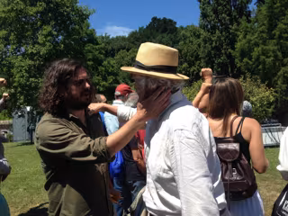 El portavoz nacional de Anova, Antón Sánchez, y el fundador, Xosé Manuel Beiras, en el acto de Anova del Día de Galicia - EUROPA PRESS - Archivo