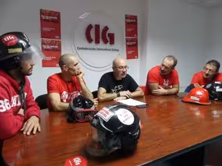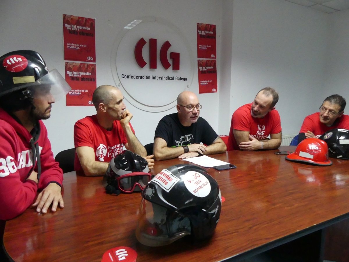 El secretario comarcal de la CIG en Vigo, Alberto Gonalves, y una representación de los bomberos de la ciudad. - CIG-VIGO