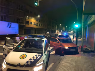 Finalmente, el coche patrulla de la Policía Local de Ferrol logró situarse a la altura del vehículo en huida, que trató de echarlos de la vía y perdió el control del mismo. Finalizó la persecución al empotrase contra una farola.
