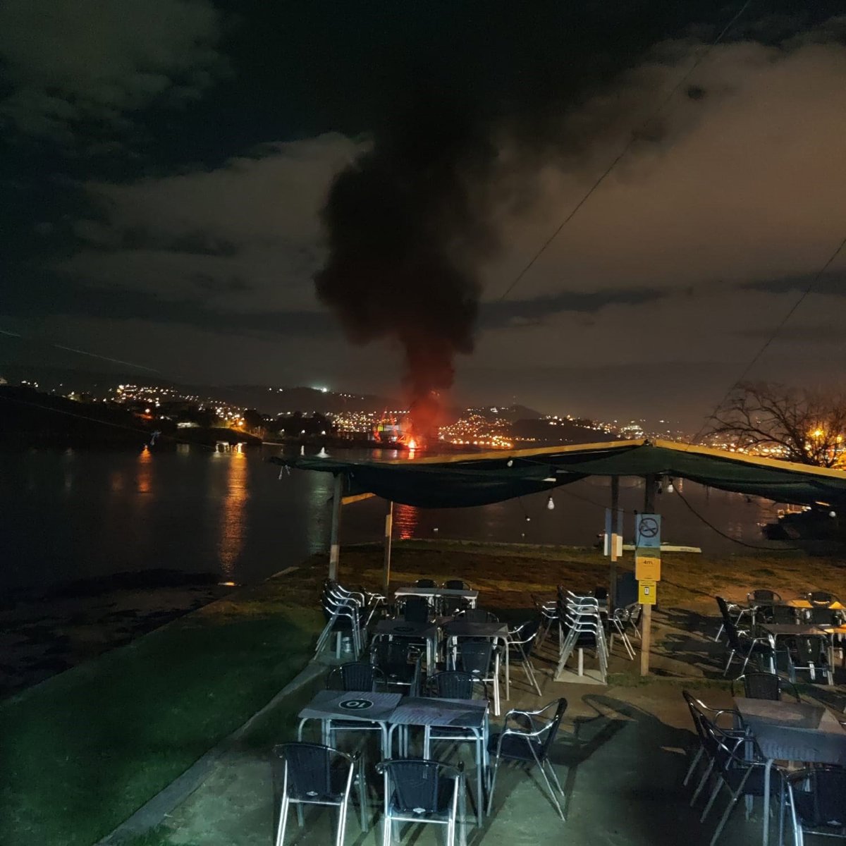Según informa el 112, alrededor de las 22,30 horas, el servició recibió varias llamadas de personas particulares que veían fuego en un barco frente al puerto de Meira, en el astillero de A Xunqueira.
