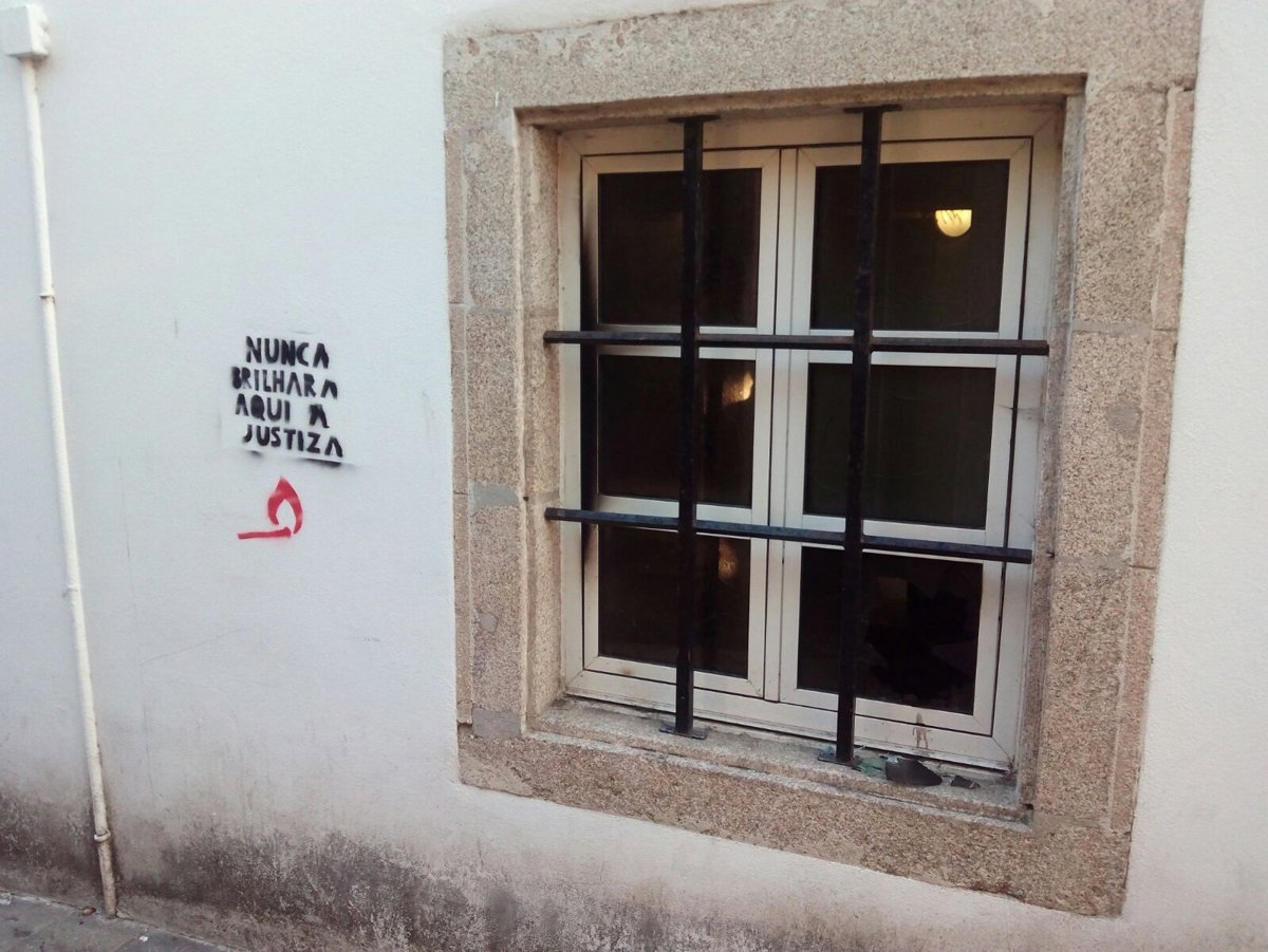 Agentes de la Policía y de la Guardia Civil también se personaron en la zona, que está acordonada, para investigar lo sucedido y tratar de esclarecer los hechos. En el edificio apareció también una pintada con quejas acerca de la ausencia de justicia sobre un dibujo de una cerilla ardiendo.