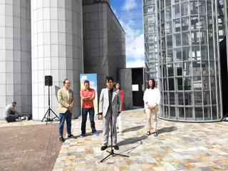 Fredy Solano ha afirmado que es "un honor" estar en la inauguración de su propia creación, que para él es algo "más que la obra en sí, simboliza un cambio en su vida", ya que este jueves recibió la noticia de la muerte de su padre a pie de las Torres Hejduk. "Espero que mi trabajo hable por mí", ha concluido.