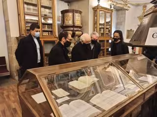 El arzobispo de Santiago, Julián Barrio, en la inauguración de la exposición Compostelana 1120-2020- Una historia. Una sede - EUROPA PRESS