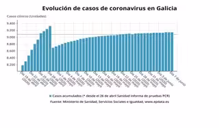 Evolución de casos de coronavirus en Galicia hasta el 7 de junio de 2020, según datos del Ministerio de Sanidad. - EP DATA
