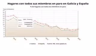 Mientras, el porcentaje de hogares con todos sus miembros en paro en Galicia es del 7,68%, ligeramente por debajo de la media española (el 7,9%). Es la cifra más alta desde el segundo trimestre de 2018.