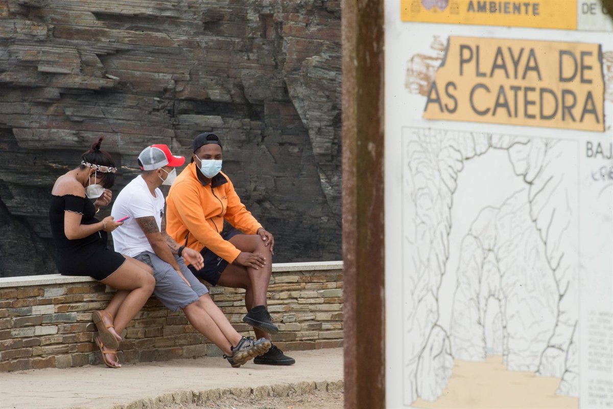 Ciudadanos en la playa de Las Catedrales, en la comarca gallega de A Mariña (Lugo), que estará cerrada durante cinco días tras declararse un brote de coronavirus que afecta a más de un centenar de personas, a 5 de julio de 2020. - Carlos Castro - Europa Press