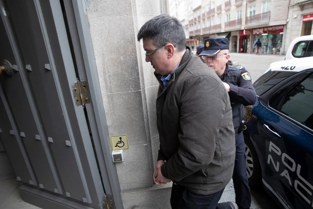Un agente de Policía Nacional lleva al acusado de un triple crimen, José Luis Abet, a la Audiencia Provincial de Pontevedra, a 13 de marzo de 2023, en Pontevedra, Galicia (España). El juicio contra José Luis Abet en la Audiencia de Pontevedra por el cri - Gustavo de la Paz - Europa Press