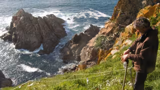 Integrantes del equipo de Investigación de la USC en uno de los puntos de recogida de muestras para su estudio sobre los materiales tóxicos en las colonias de aves marinas - ESTHER SIERRA ABRAÍN