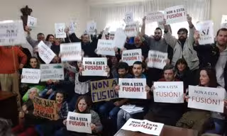 El público estaba dividido entre los partidarios del proceso de fusión y quienes estaban en contra. Estos últimos portaban carteles con lemas como 'Cerdedo no es propiedad del PP', 'No a la fusión de la traición' y 'No a esta fusión'. También asistió como espectador el alcalde de Cerdedo, José Balseiros.
