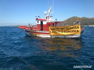 Los pescadores han salido a recibir al buque de Greenpeace con pancartas con mensajes como 'La pesca sostenible es el futuro' y 'Cañete, no hundas la pesca europea'. Esta movilización se ha producido en un momento en el que la Comisión Europea está negociando la nueva Política Pesquera Común (PPC) que regulará el sector los próximos años.