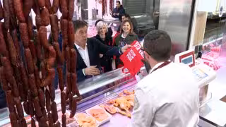 "Pero si eres más joven en persona", le ha dicho el propietario de una de las pescaderías, al que Besteiro ha agasajado con una bolsa de la campaña 'Desta Vai'.