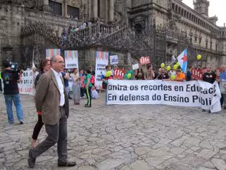 Junto a la responsable del área de educación del Bloque, Carme Adán; la portavoz parlamentaria, Ana Pontón; y el líder municipal, Rubén Cela; Francisco Jorquera ha mostrado este miércoles su apoyo a madres y padres de alumnos del rural, que se manifestaron en Santiago en contra de la "falta de medios" en estos centros.