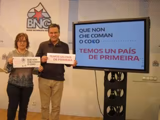 Bajo el lema 'Que non che coman o coco... Temos un país de primeira --Que no te coman el coco... Tenemos un país de primera--', los nacionalistas gallegos repartirán folletos en el marco de esta campaña, que se cofinancia con fondos del grupo parlamentario europeo, y en la que denuncian que a Galicia "no le dejan producir", le "expolian" su ahorro, y paga más por sus peajes internos que por ir a Madrid, entre otras cuestiones.