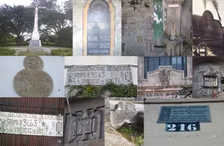 A esta cruz se suman placas en edificios de viviendas sociales, un escudo en el sindicato de estibadores, otro en la sede de Aduanas y un escudo en la fachada del IES Santa Irene.