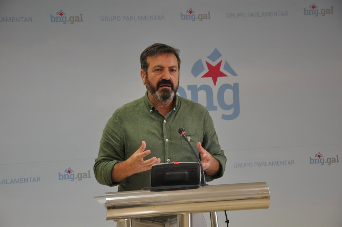 El diputado nacionalista Luís Bará durante la rueda de prensa. - BNG