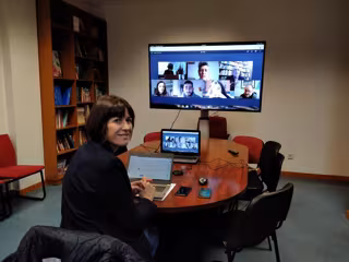 La portavoz nacional del BNG, Ana Pontón, en videoconferencia con el sector educativo por videoconferencia este 6 de abril - BNG