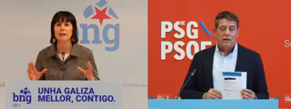 La portavoz nacional del BNG, Ana Pontón, y el secretario xeral del PSdeG, José Ramón Gómez Besteiro, en ruedas de prensa. - BNG/PSDEG