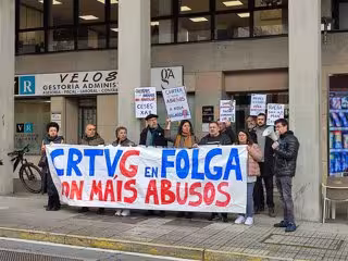 Tiago Alvite ha recordado que la concentración de este martes ante la Cámara gallega se enmarca en "una movilización más amplia" que arrancó con la huelga del 6 de marzo. Además, tras los paros del 24 y 25 de ese mes, ha señalado que prevén determinar en las próximas semanas otras jornadas de huelga en la CRTVG.