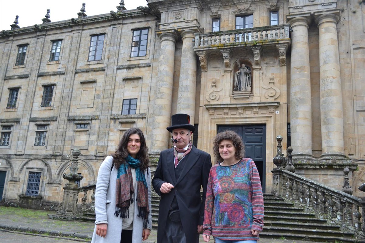 La candidata de esta formación a la alcaldía, Goretti Sanmartín, acompañó al actor Lucho Penabade a los pies del Mosteiro de San Martiño Pinario, que sirvió de refugio al pueblo frente al ejército español y donde el intérprete ha recreado la proclama de Antolín Faraldo para la constitución de la junta superior del Reino de Galicia.