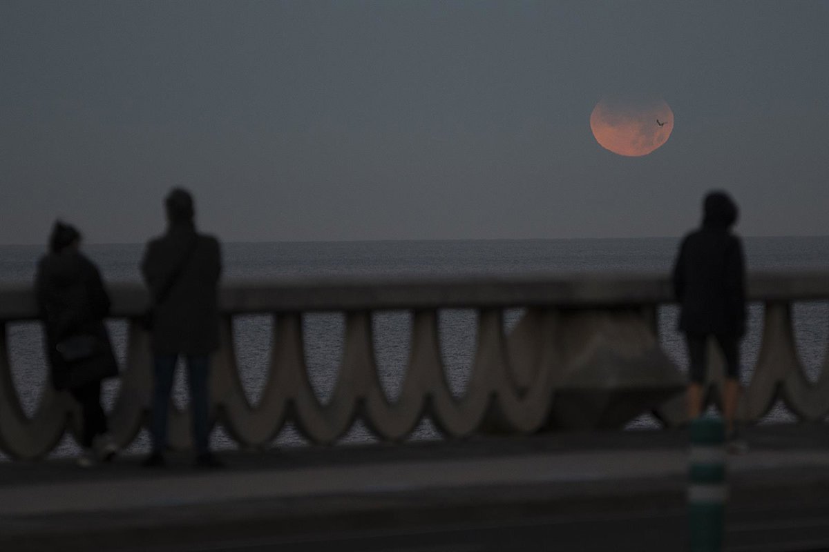 Tres personas observan el eclipse lunar parcial desde A Coruña, a 19 de noviembre de 2021, en A Coruña, Galicia, (España). - M. Dylan - Europa Press